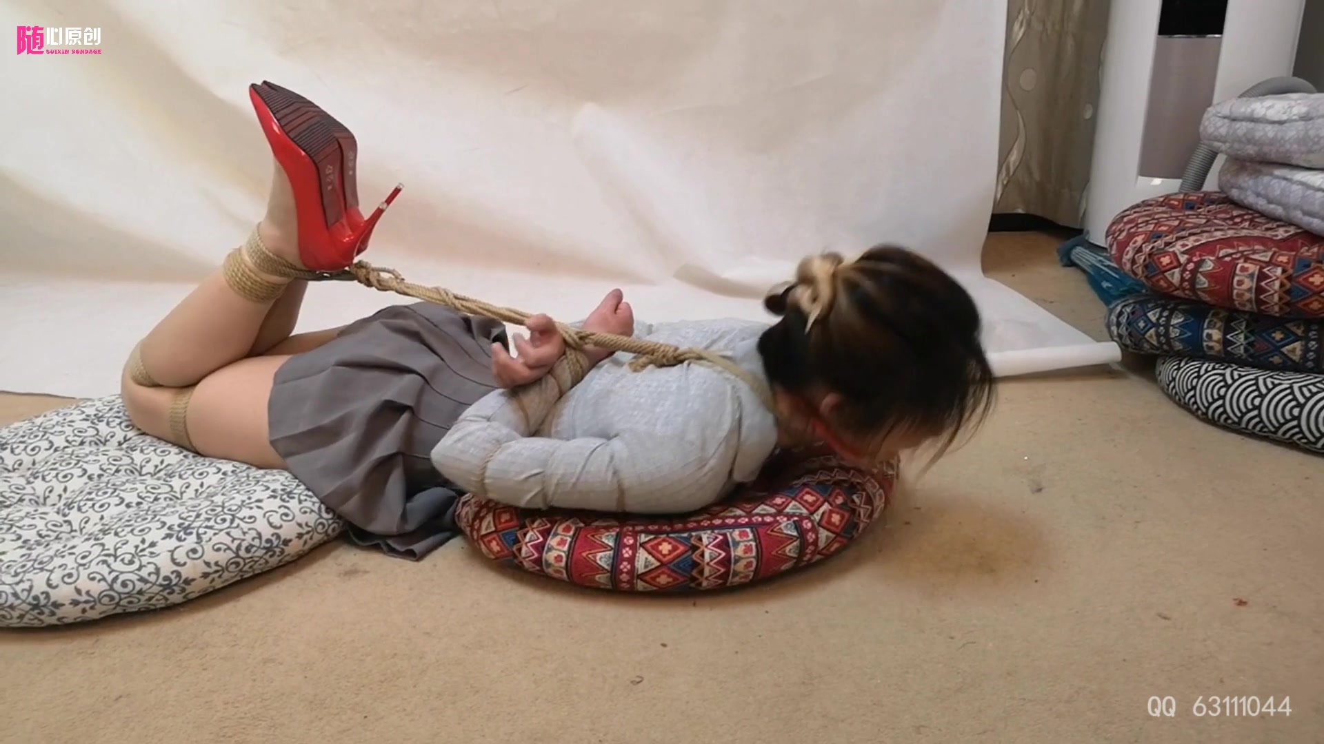 鹿野 学生群 五花大绑 高跟鞋吊起一直腿 鞋跟着地 驷马紧缚