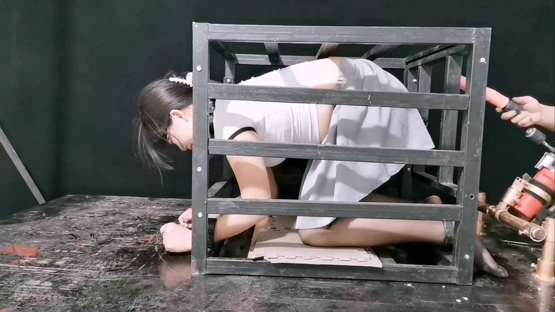 【缚心室】80多斤女学生的拘束架折磨小合集,啵啵贝VS炮机,两种