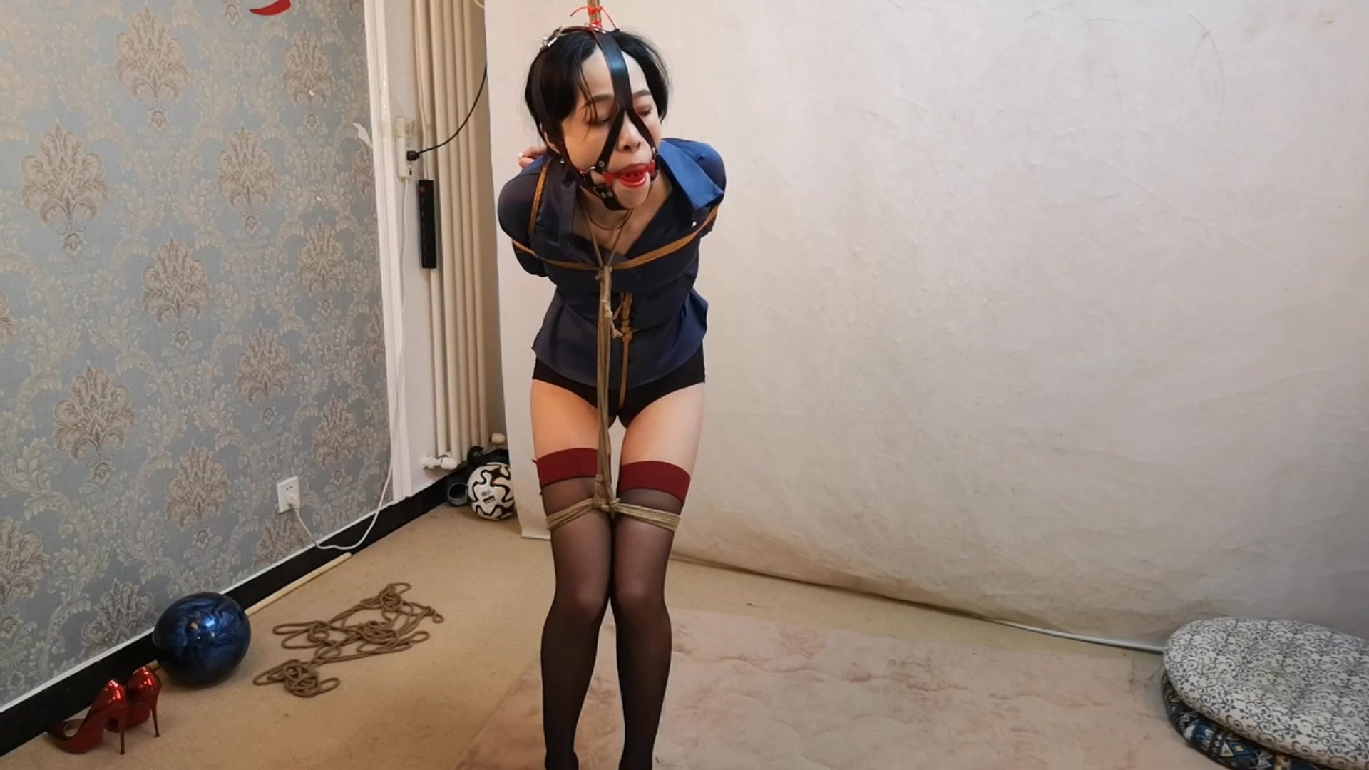 【束缘阁】文慧白衬衣皮裙 柱子全身固定