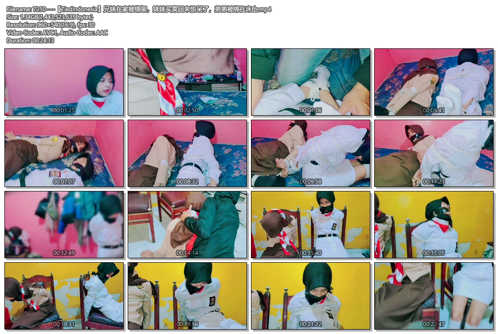 【TiedIndonesia】兄妹在家被绑架,妹妹买菜回来惊呆了,弟弟被绑在床上