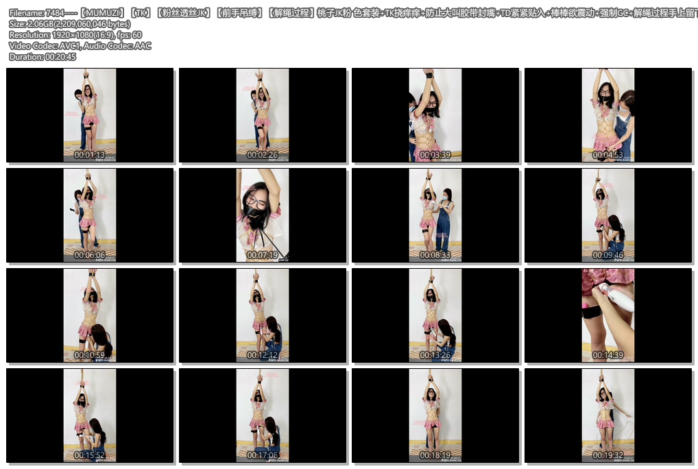 【MUMUZI】【TK】【粉丝透丝JK】【前手吊缚】【解绳过程】桃子JK粉色套装+TK挠痒痒+防止大叫胶带封嘴+TD紧紧贴入+棒棒欲震动+强制GC+解绳过程手上留下深深的印记