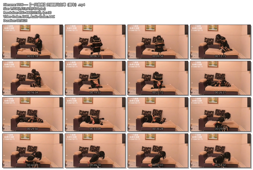 开腿加驷马,两边脚腕各一根绳子绑手,中间再来一根绳子收紧手,在没有实验过的情况下直接就用了,没想到这么紧,本来计划半小时的视频足足挣扎了一个小时多简直太难解开了,即使被我拉下来了大臂绳子手还是松不了!玩具依然是训练器加还有口球,身上全湿透了,口水一堆,简直就是在折磨 !