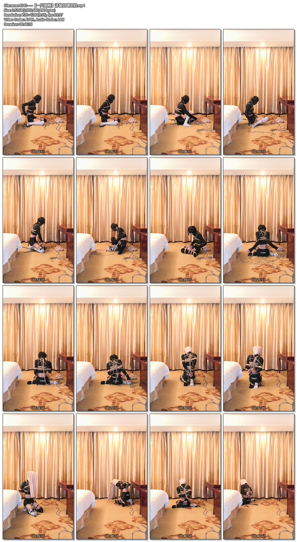 这次是一个小伙伴定拍的泳装哦,录得太艰难了熊又又又差点翻车带了剪刀都没用,穿好泳装,然后带上郊狼的电击gc,用另一个手机ai自动加强变档,开腿,固定zdb,然后绑个一个自己改版的五花,大臂固定好锁死,然后再拿两根段绳子一根做绳圈绑手,另一跟做一个收紧套再收紧绑手的绳圈,然后一头从肩膀后面绳子穿过去吊起来,把手彻底拉的死死的,这种绑法太危险了,大家不要学萌熊哦,因为就算你把肩膀绳子全部扯掉,也不不会让手松下来了,萌熊以为带了剪刀就很安全,结果摔了两次好不容易拿到剪刀,结果根本没有角度给自己剪,好不容易扯下来一根,结果还剪不动,呜呜呜,电击gc我设置的没隔一分钟加强一次,刚绑完腿的时候就已经很高了,解开的时间越长,他就加的档位越多,屁股都觉不是自己的了,小伙伴还要让熊头上套上打底袜,眼睛什么也看不到,我的马具口球有一层罩子,限制嘴巴呼吸,套上袜子之后,我又出了汗,还没有开空调,湿透的打底裤紧紧的贴在我脸上,呼吸特别急促,小伙伴们都太坏了!!!!