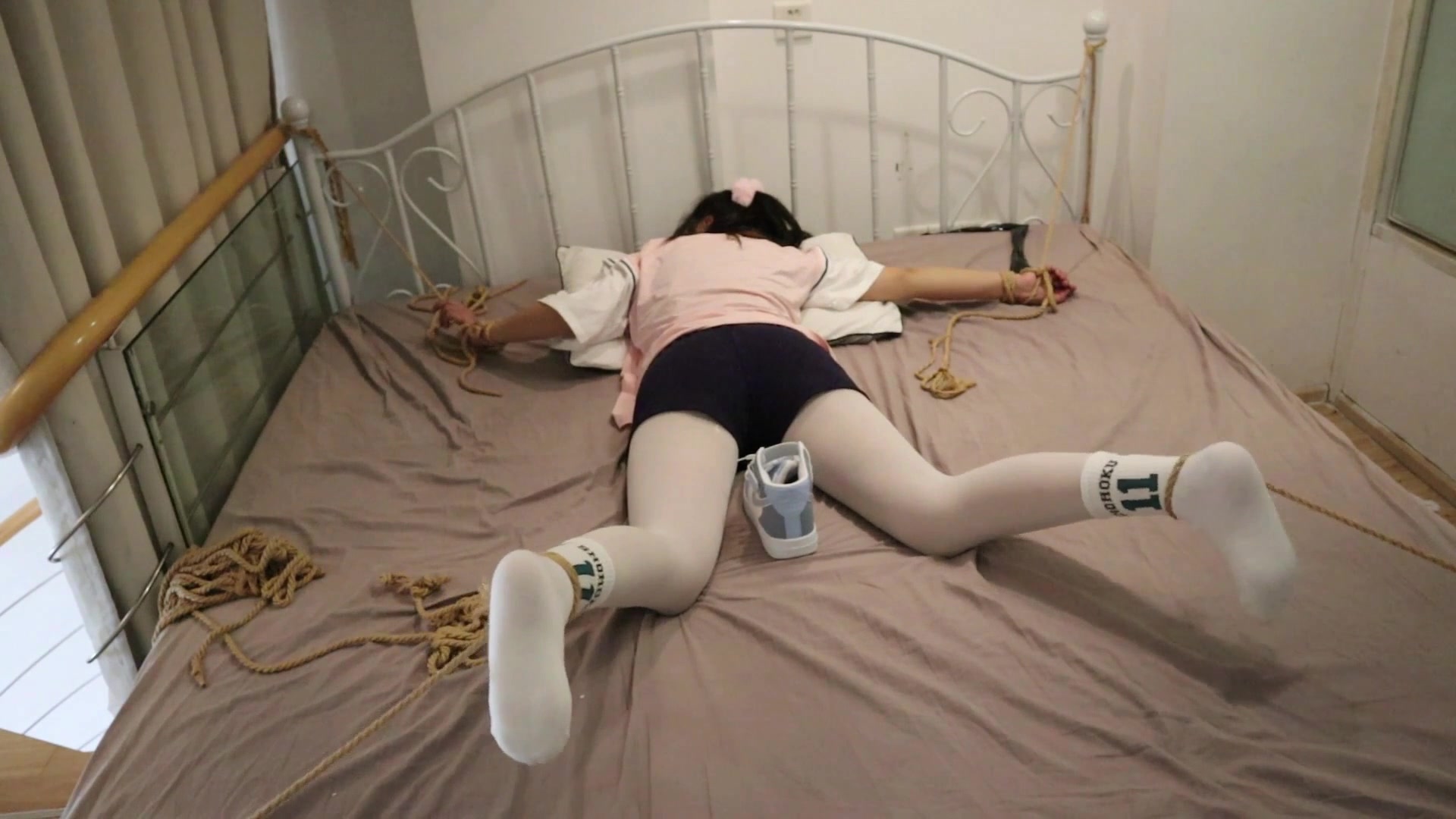 你看这样行吗 直接绑好四肢先封上嘴巴 挑逗可爱的篮球女孩 呜呜呜