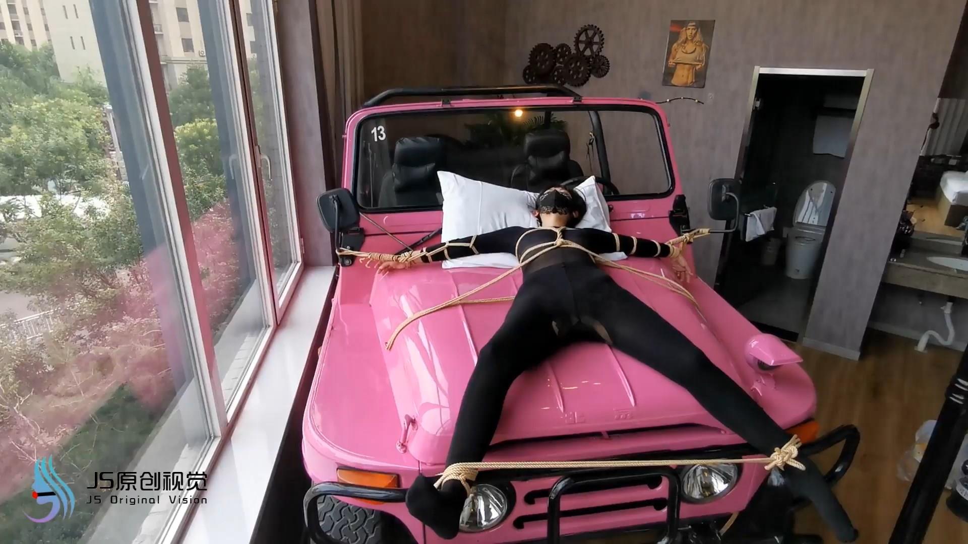 【JS】琳洛 车盖大字捆绑 黑色紧身衣 快感棒刺激