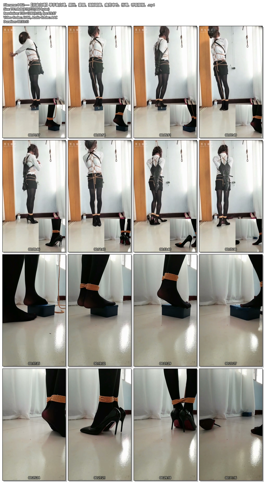然后甩脱高跟鞋,立刻被绳子勒紧,被迫踮脚。