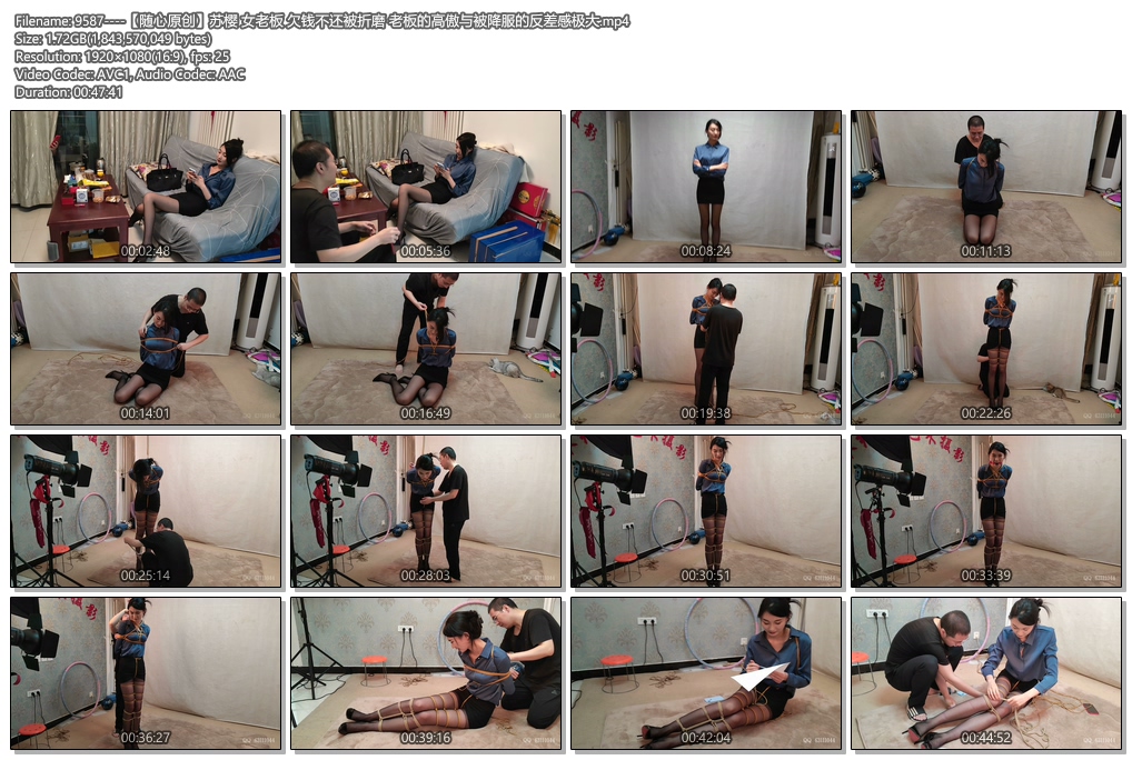 女老板苏樱 欠员工工资一直不发 被员工拍下来自摸的视频 威胁她还钱 只是没有钱 员工为了泄愤 把她绑起来调教一番 写下欠条规定下周还钱