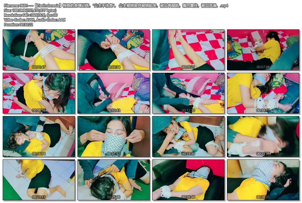 【TiedIndonesia】特殊的束缚训练,“公主不休息”。 公主被绑架并被绑起来,被迫单腿跳,嘴巴塞住,被迫洗澡。