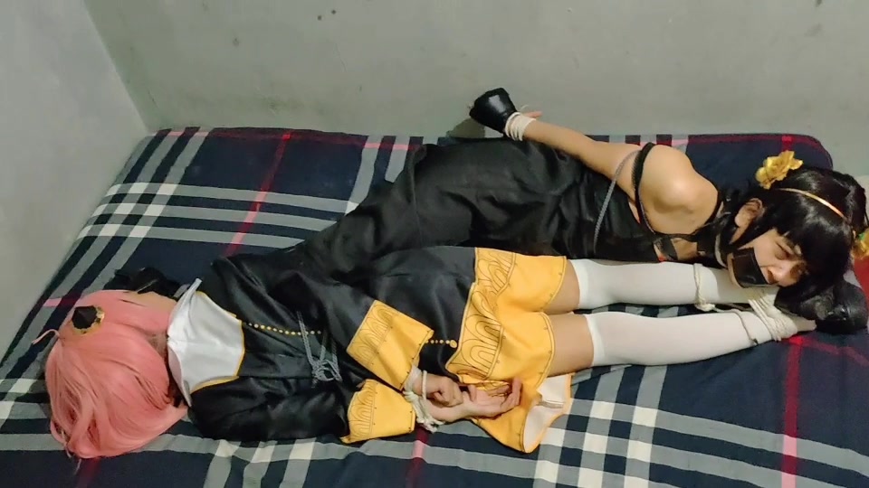 【TiedIndonesia】cos 束缚系列“任务编号 9 特工 Yor Forger” 在特工 Yor 不知情的情况下,他的女儿 Anya Forger 跟随他执行一项秘密任务。 Anya 被保镖抓住并绑起来。